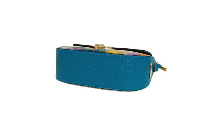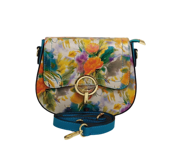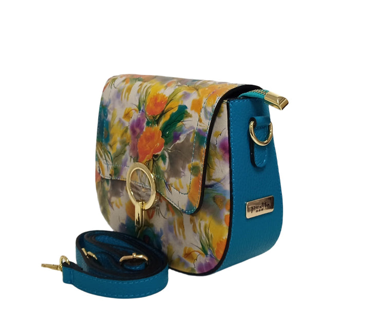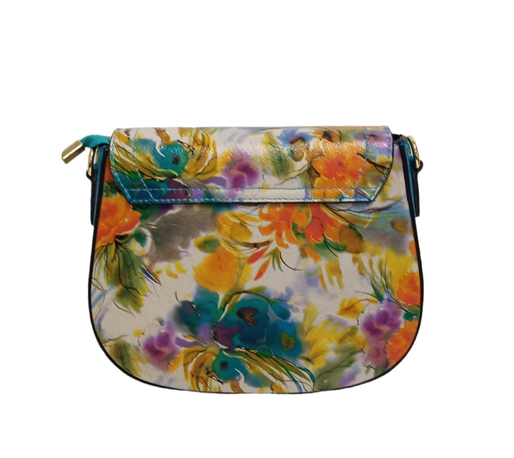 Bőr Táska, Postás Típus, Pretta-183 Modell Narancs Virág- Türkiz