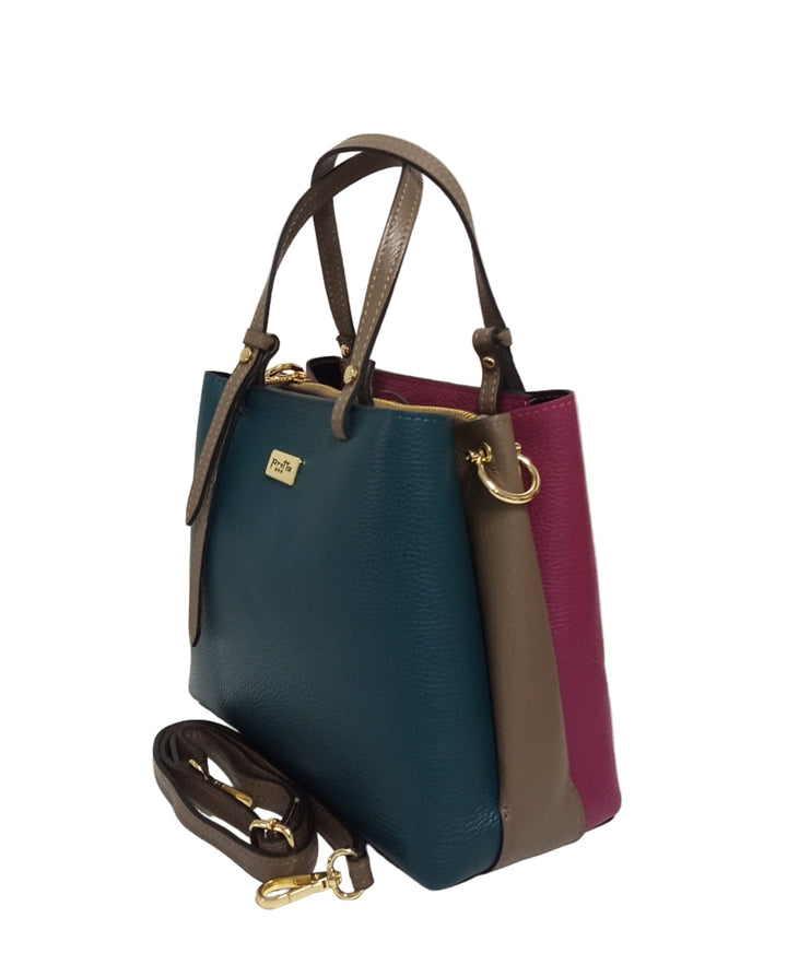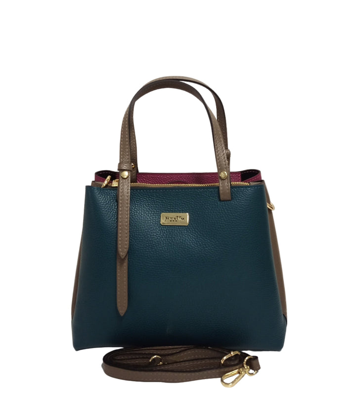 Bőrtáska, 2 OLDALÚ, Pretta modell - 7040 Magenta - Taupe - Petrol
