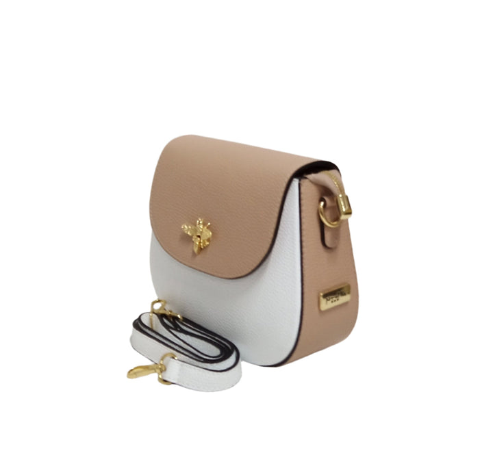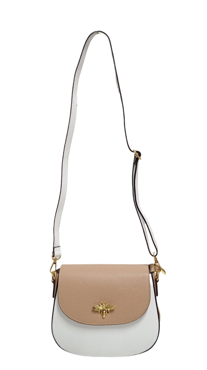 Bőrtáska, Postás típus, Pretta-185 modell Többszínű Fehér-Púder
