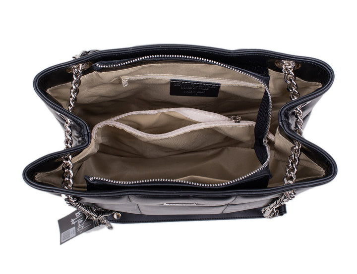 Bőrtáska, Pretta 7335 modell-Fekete- ARANY KIEGÉSZÍTŐK
