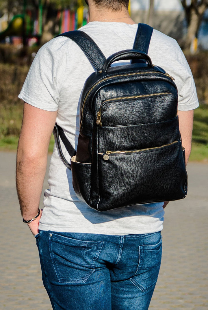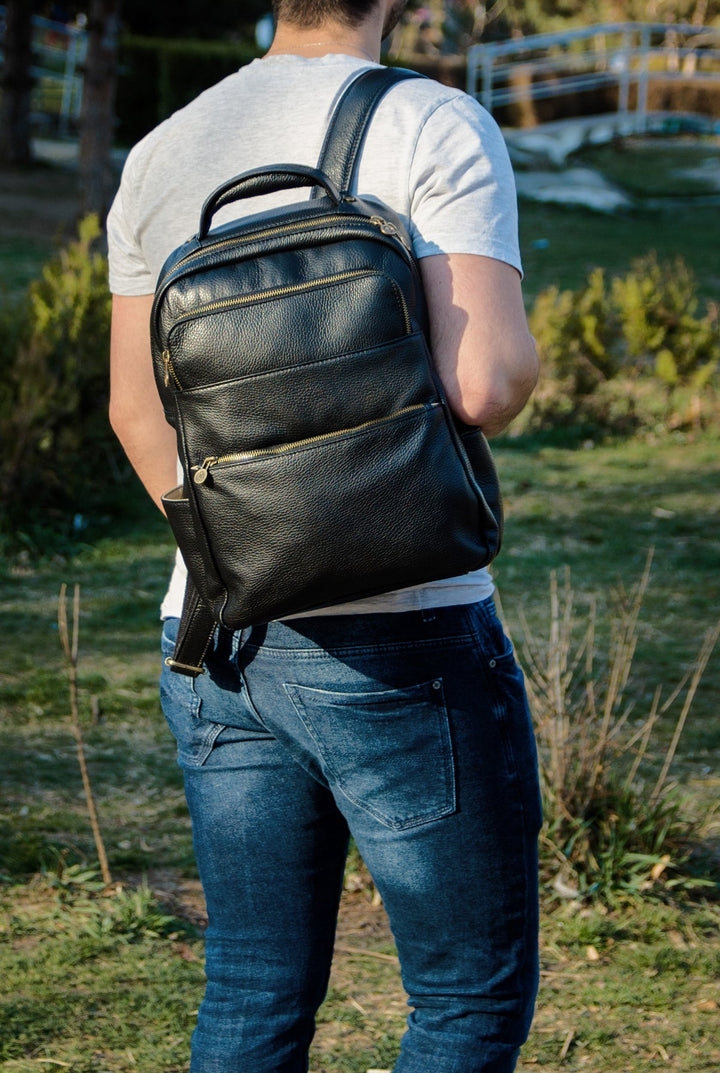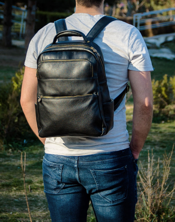 Férfi Hátizsák Valódi Bőrből - Pretta 500 Fekete